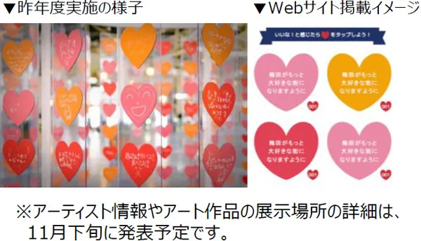 本イベントでは、地元の子どもたちや梅田に関わる人たちから、「梅田のまちの未来の姿」をテーマに、想いを記したハートを集めて展示する「HEART COLLECT」や、梅田地区の各施設(商業施設・ホテル等)がハートを象った装飾や心あたたまるイルミネーションを設置し、まちを彩る「HEART SPOT」を開催します。