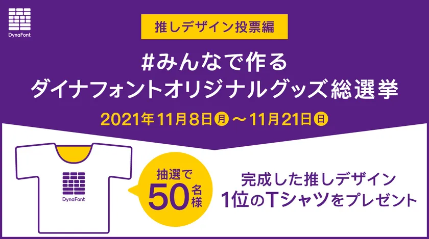 文字文化の素晴らしさを伝えていくダイナコムウェア株式会社(本社:東京都千代田区、代表取締役:羅 慧美)は、2021年11月8日(月)から11月21日(日)の期間中、「【推しデザイン投票編】#みんなで作るダイナフォントオリジナルグッズ総選挙」を開催いたします。