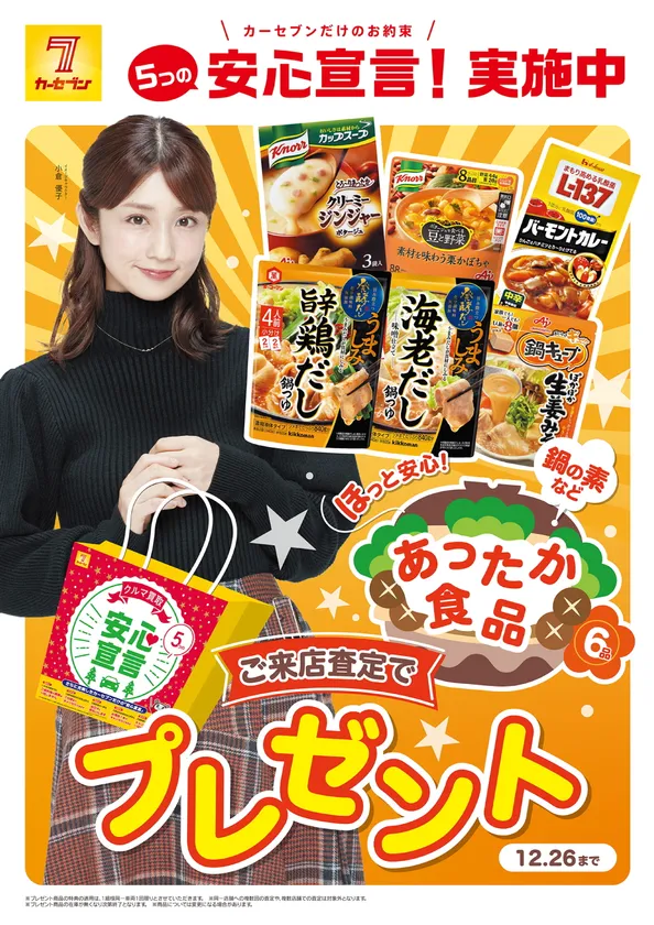 カーセブン ご来店査定で「ほっと安心!鍋の素など あったか食品6品がもらえる」キャンペーンを実施!