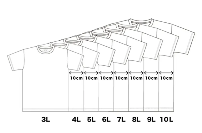 着られるサイズの服が見つからずお困りの体の大きな方が、3L~10Lまでの8サイズ、各8色から、丈までピッタリ似合うTシャツを選べるようにいたしました。