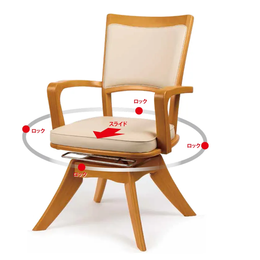 特徴 :脚の不自由な方の自立を助け、介助者の負担を軽減する介護椅子。