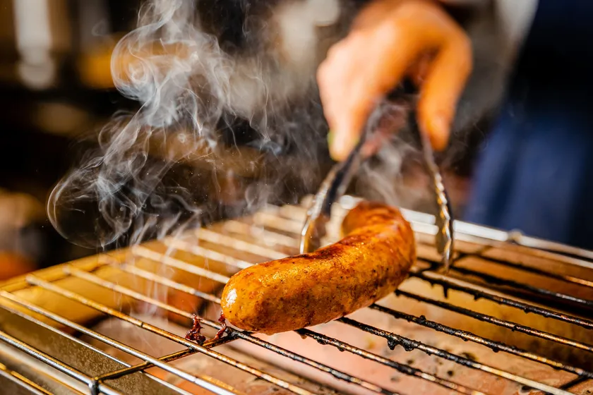 口いっぱいにほおばれば、パンパンに張り詰めた腸がバリッと歯切れよく弾け、スモークの香ばしさと共に超粗挽きの肉塊が口の中になだれ込み、極限まで凝縮された豚の旨味と肉汁がエンドレスに押し寄せます。