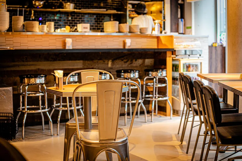 スタイリッシュな雰囲気の中にも温かみが感じられ、古き良きアメリカンダイナーのイメージを、現代的にアップデートさせた内装をイメージしています。