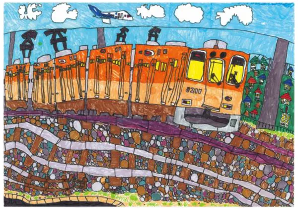 今回の大賞は、電車との楽しい想い出を自由な発想で表現してくれた大阪市の小学2年生、吉福 知大さんの作品に決定しました。