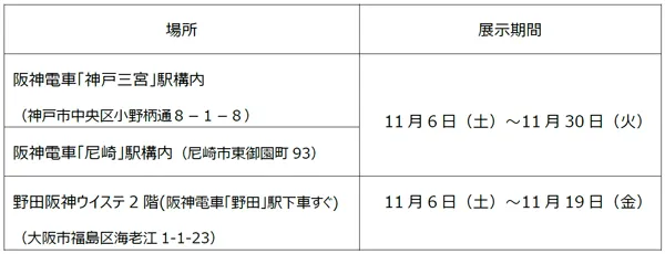 また、受賞作品は、阪神電車野田駅前にある野田阪神ウイステと尼崎駅・神戸三宮駅の各駅構内でシート展示するとともに、本日からホームページに掲載します。併せて、大賞・準大賞の作品は、阪神電車車内にポスターとして随時掲出します。