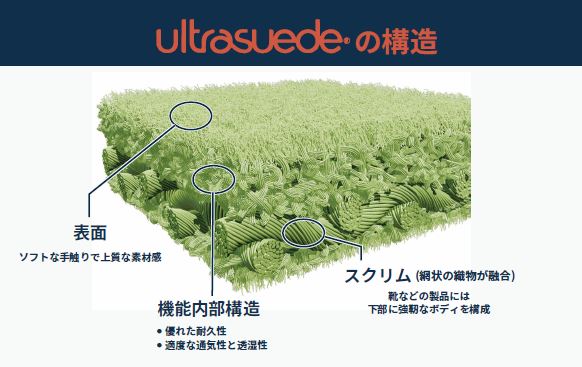 今この時代を生きる私たちが未来の地球のためにできることを真剣に考え選んだ素材が東レ株式会社のウルトラスエード(R)です。それは原料の約50%に再生ペット繊維を使用することにより、温室効果ガスを削減し、安定した供給と品質を維持することができる素材だからです。