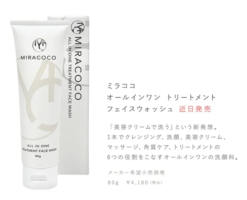 そして、1回の洗顔で汚れを落としながらも、美容成分を角質層の隅々まで浸透させて、ハリ・ツヤ潤いを与え、肌を柔らかくすることが可能な洗顔料「ミラココ オールインワン トリートメント フェイスウォッシュ」が誕生。