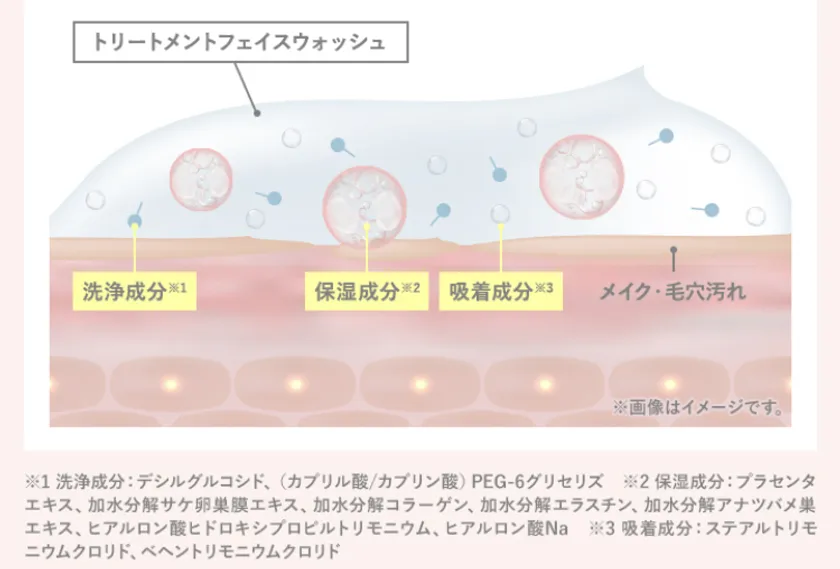どんなに良い美容成分を洗顔に入れても、通常は洗い流すと同時に流れてしまうが、洗い流されずに角質層の隅々まで美容成分が届く。それがこの洗顔の凄いところ。