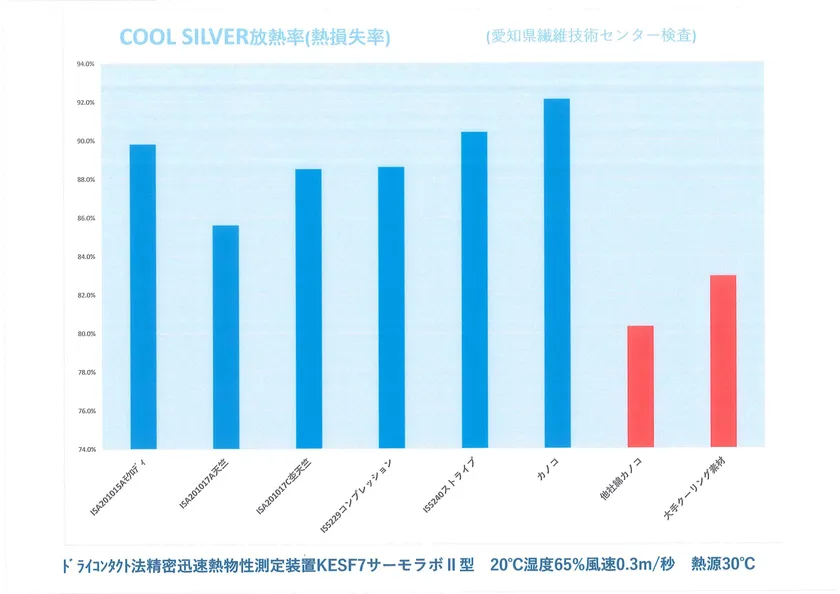 COOL SILVERの生地はドライコンタクト法精密迅速熱物性測定装置(KESF7サーモラボII型)において