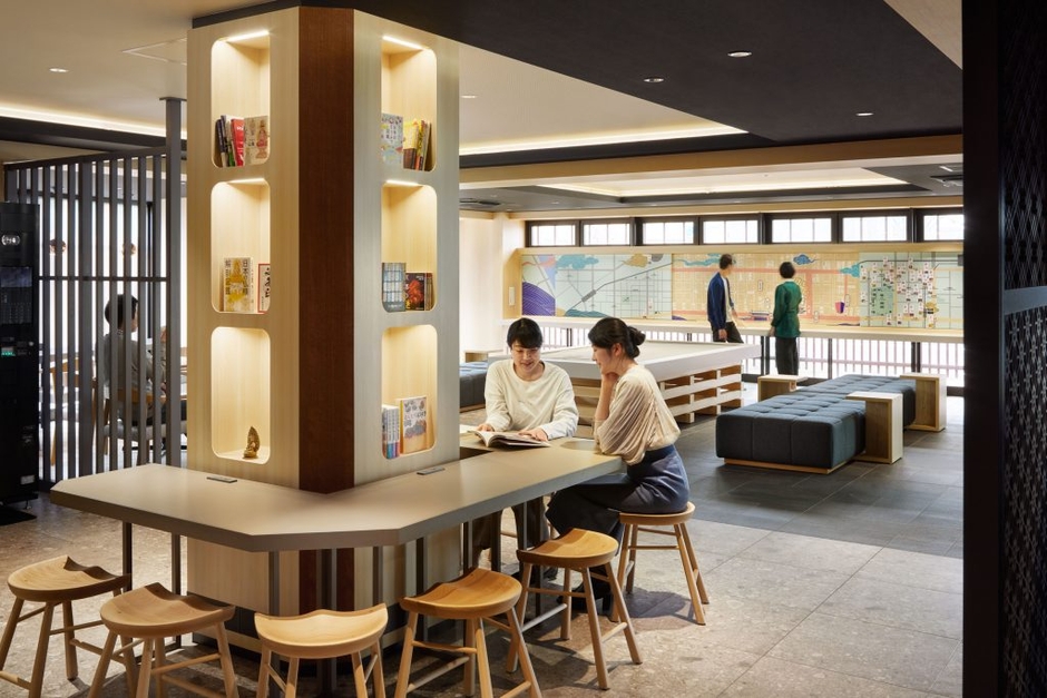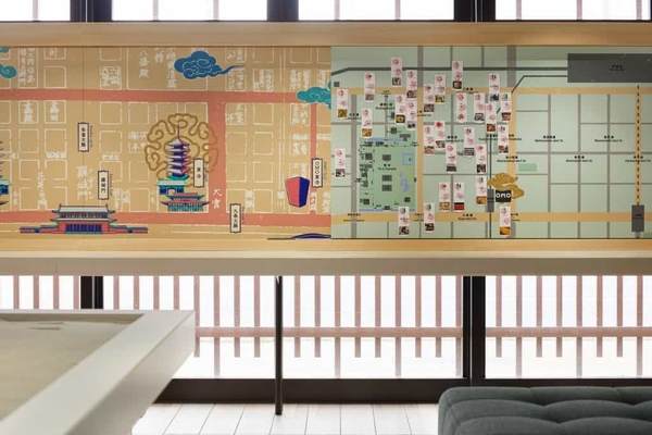 OMOベースは、フロント、ライブラリーを備えたパブリックスペースです。客室の延長として使える居心地の良さはもちろん、街歩きを楽しくする仕掛け満載の遊び心溢れた空間です。OMO3京都東寺では、京都の他の観光地に出かけた後でも、東寺エリアが一番の記憶に残るようにという思いをこめてデザインされています。