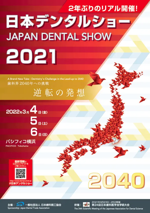 日本デンタルショー2021のメインテーマは、学術大会と同じく“逆転の発想 歯科界2040年への挑戦”とし、最新の歯科医療機器や歯科医療技術に関する情報を発信することにより、歯科界全般の発展につなげていくことを目標としています。