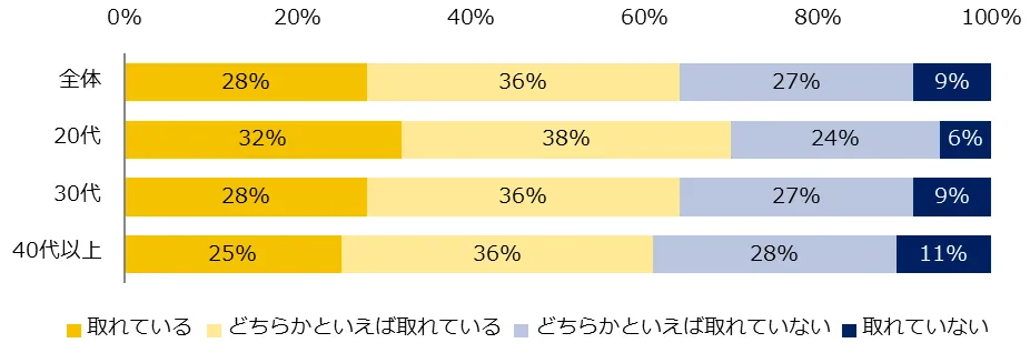 「普段、職場でのコミュニケーションは取れていると思いますか?」と伺ったところ、64%が「取れている」(取れている:28%、どちらかといえば取れている:36%)と回答しました。