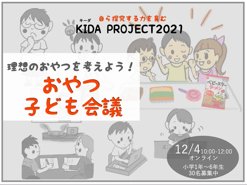 この度、探究学習の研究プロジェクト【KIDA(キーダ)PROJECT(主催:慶應義塾大学SFC研究所上席所員 醍醐身奈氏、運営:一般社団法人キッズM)】の第二弾となる探究ワークショップ「おやつ子ども会議」(以下 本ワークショップ)を2021年12月4日に小学生を対象に開催いたします。