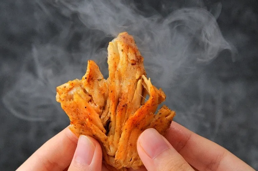 LIKE CHICKEN!?は、これまでにない鶏肉のような弾力のある歯ごたえとさけるような繊維感が特徴の新しい大豆ミートです。茹でたLIKE CHICKEN!?を指でさいて使ってヘルシーメニューを楽しんだり、衣をつけて揚げてジューシーでボリューミーな料理にしたり、幅広い料理方法でおいしくお召し上がりいただけます。さらに、バラ凍結のため、湯戻し・水切りの手間なく加熱調理に使える気軽さもうれしいポイント。(LIKE CHICKEN!?は解凍後、要加熱品になります。)