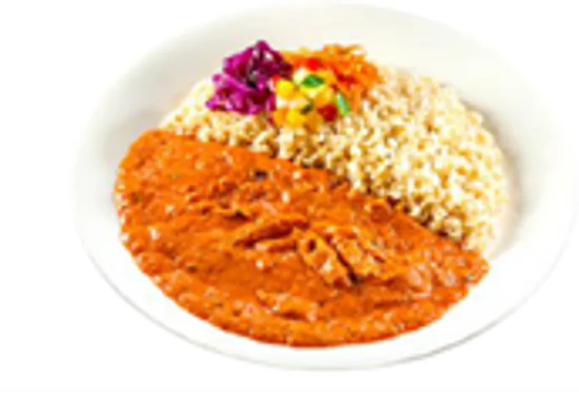 ヴィーガンバターの香りと野菜の旨みが広がる、まるでバターチキンなカレーです。