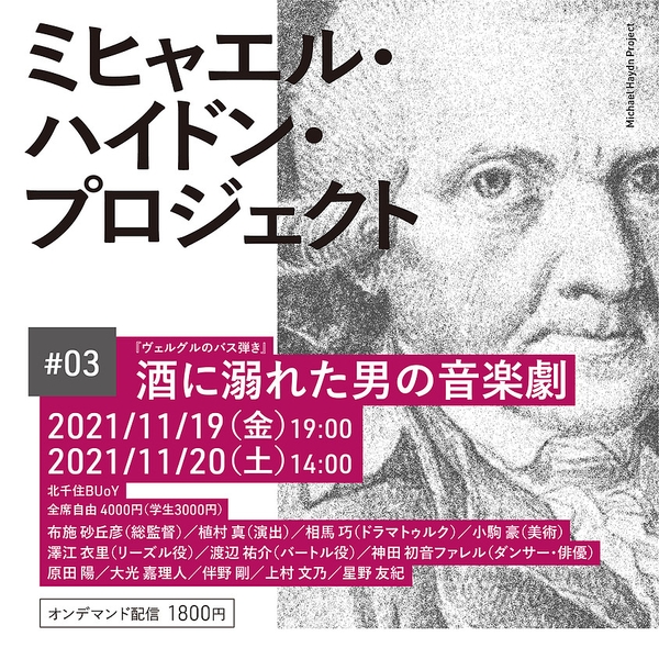 ミヒャエル・ハイドン・プロジェクト #03 酒に溺れた男の音楽劇 『ヴェルグルのバス弾き』 が2021年11月19日 (金) ~2021年11月20日 (土)に北千住BUoY(東京都足立区)にて開催されます。チケットはカンフェティ(運営:ロングランプランニング株式会社、東京都新宿区、代表取締役:榑松 ⼤剛)にて発売中です。