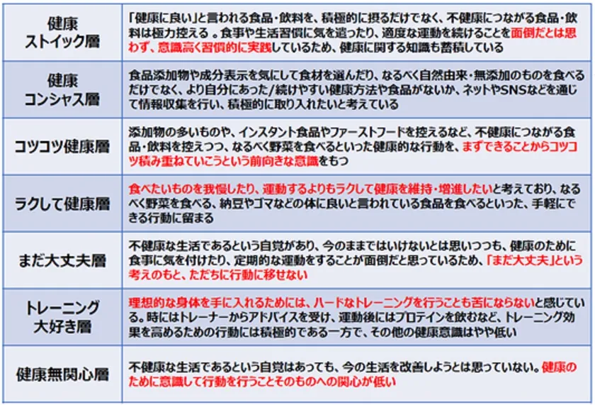 図2 健康セグメントの特徴一覧