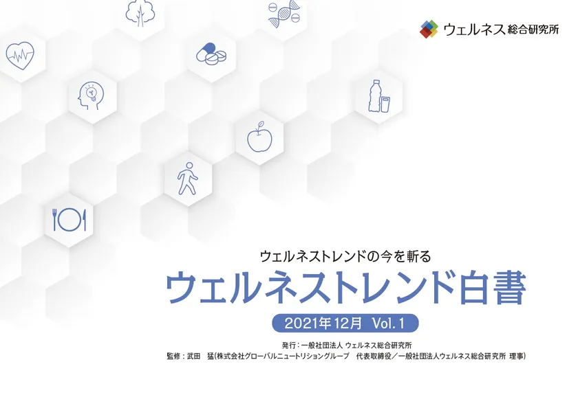 一般社団法人ウェルネス総合研究所(本社:東京都渋谷区、代表理事:萩原 千史、以下「ウェルネス総研」)は、10代~70代、4,800名の生活者の健康・ウェルネスに関する意識と行動分析に基づき、今後予測されるヘルス・トレンドシナリオを洞察した調査レポート『ウェルネストレンド白書 Vol.1』(監修:武田 猛 株式会社グローバルニュートリショングループ 代表取締役/ウェルネス総研 理事)を12月7日に発刊いたします。
