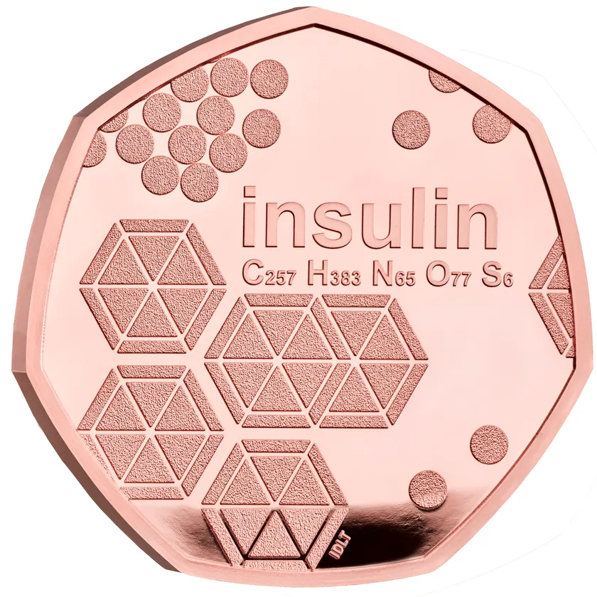 ご案内するラインナップは額面50ペンスの金・銀・白銅貨の計4種。インスリンの発見を記念するコインが英国王立造幣局から発行されるのは、今回が初めてのことです。