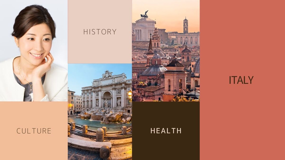 10代半ばでイタリアへ渡り、20年にわたりイタリアで育つ。ボローニャ国⽴⼤学卒業。ミラノ国⽴⼤学⼤学院修了。イタリア文化賞。司⾺遼太郎奨励賞。現在は東京・港区で会社経営をしながら⼤学でイタリア⾔語の講師として教壇に立つ。⽇本とイタリアの交流を⽂化⾯だけでなくビジネス⾯からも促進している。『日経ウーマン』ほかメディア取材を多数受けるなど、イタリアの⽼舗ブランドと本格的にビジネス展開する、⽇本では数少ない経歴の⼥性経営者。さらにイタリア⽂化や健康のトレンドを伝える『イタリア通信』を配信中。