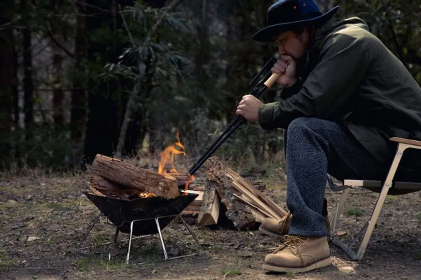 焚火を楽しむ時にあると役に立つ、火吹き棒の機能。狙ったところにピンポイントで空気を送れて、火種を付けたり火力を上げたりすることが簡単にでき、灰の舞い上がりも防げます。