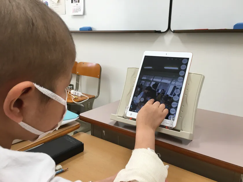 分身となったロボットが授業に参加。友だちとの会話を楽しみ、体育を見学