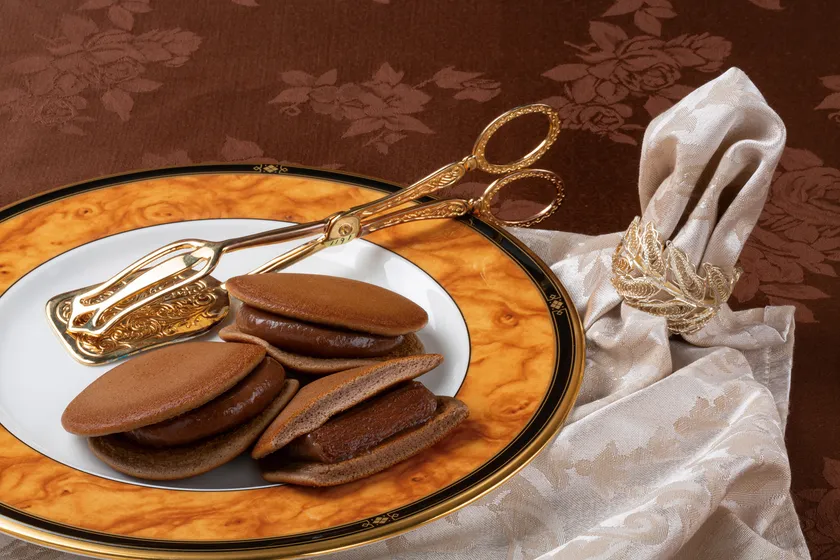 ベルギー産チョコレートのガナッシュを求肥で包み、チョコ味のどら皮ではさみました。