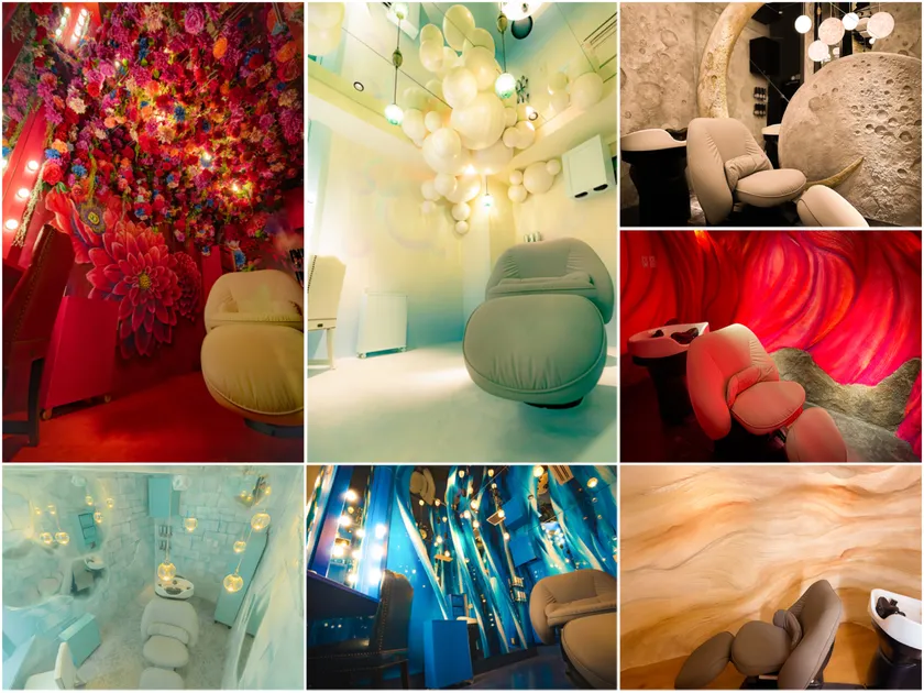 “旅するヘッドスパ”をコンセプトに全7部屋、お客様を別世界へ誘う、お部屋別の空間テーマでお迎え致します。