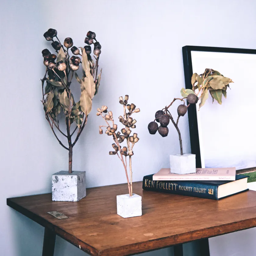 『植物を再生させる』というコンセプトのもと、作家がひとつひとつ思いを込めて作成した、ドライフラワーを用いたオブジェ。