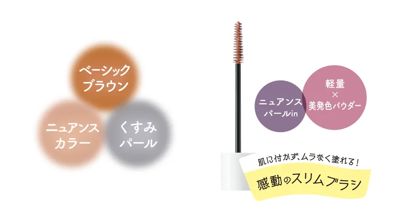 肌に付かないストレスフリーな使い心地と、眉尻や細い毛もムラなく塗れる綺麗な仕上がりを両立しました。毛流れも整えやすく、垢抜け感のあるトレンド眉に仕上がります。