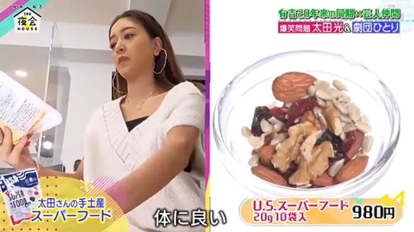 人気お笑い芸人の爆笑問題 太田光さんが毎朝食べているオススメ商品として、当社のナッツ商品「U.S.スーパーフード(ミックスナッツ)」を櫻井翔さん・有吉弘行さん等へご紹介いただきました!