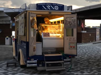 北海道発アイスクリームジェラートのキッチンカー「Flavour J」が 神戸に上陸!巨大ボンネットバスを改装したおしゃれな販売車 日本初100%ジャージーA2ミルク&クリーム使用の高級ジェラート