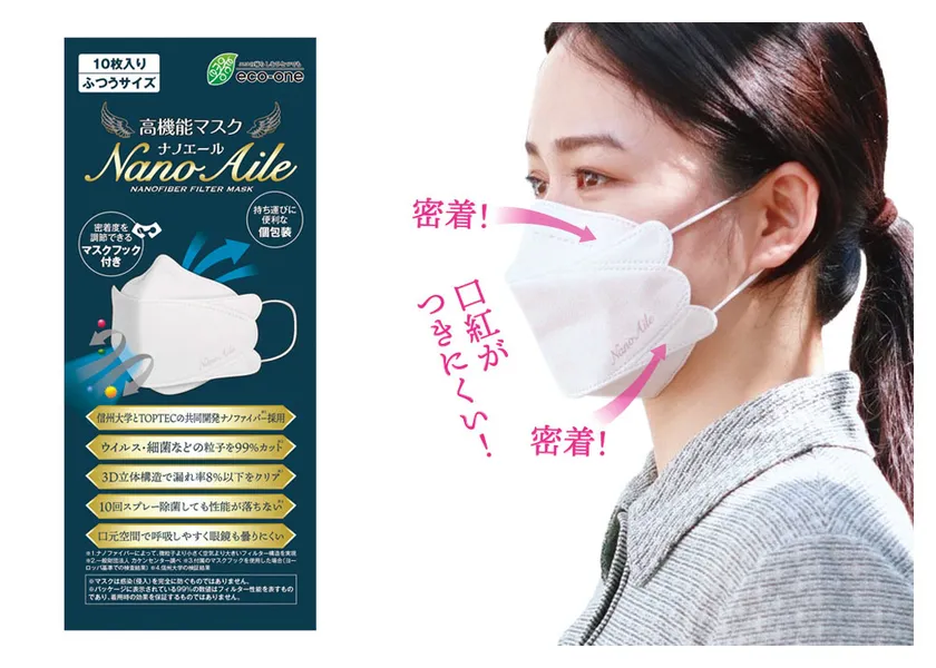 除菌して10回繰り返し使える ナノファイバーマスク『ナノエール』 口元に空間が広がる立体構造で呼吸が快適