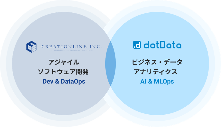 クリエーションラインは、アジャイル開発、DevOps、クラウドネイティブ、AI&LLMなどの先端技術を活用し、企業のイノベーションを支援しています。一方、dotDataは、企業のデータ利活用において最も重要であり、かつデータ分析の専門家でも難易度が高いとされる、「特徴量」の発見・抽出を自動化する独自技術を提供し、企業のデータ利活用を高度化しています。