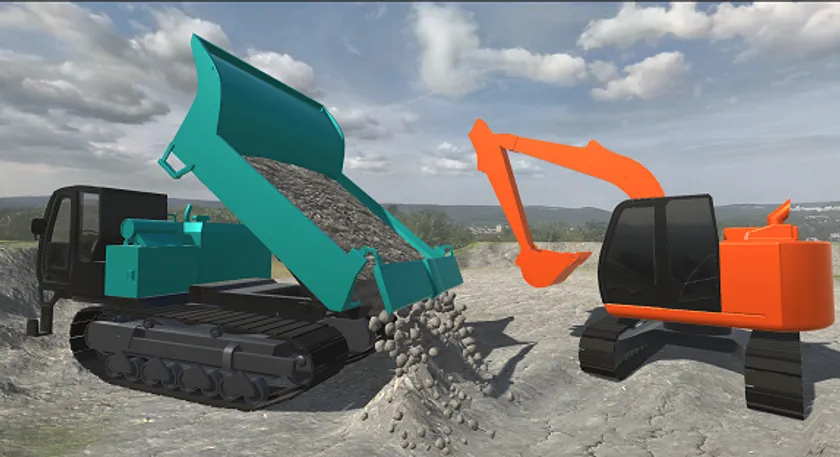 「AGX Dynamics」によって、掘削、放土といった土砂の挙動を高い精度で再現しながら、同時にリアルタイムでの計算処理を実現させることが可能です。