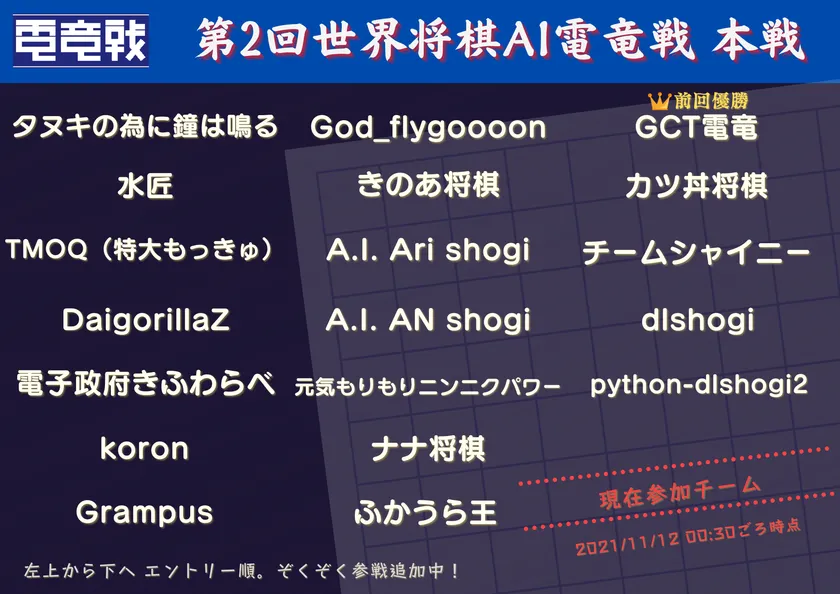 第2回世界将棋AI電竜戦本戦エントリーチーム