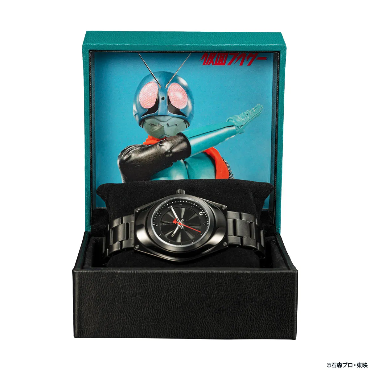 腕時計は、仮面ライダー50周年記念ロゴが箔押しされた特製ボックスに収めてお届けします。