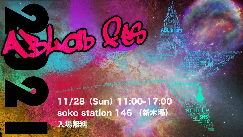 宇宙ビジネスのコミュニティを運営する一般社団法人ABLab(所在地:東京都中央区、代表理事:伊藤 真之、以下:ABLab)は、宇宙ビジネスをテーマとしたコミュニティイベント「ABLab FES 2021」を、11月28日に新木場のクリエイションスペース「soko station 146」で開催します。この度、イベントページを公開し、事前の参加予約を受付開始しました。誰でも無料で参加でき、ABLabが取り組む宇宙ビジネスに関するコンテンツをお楽しみいただけます。