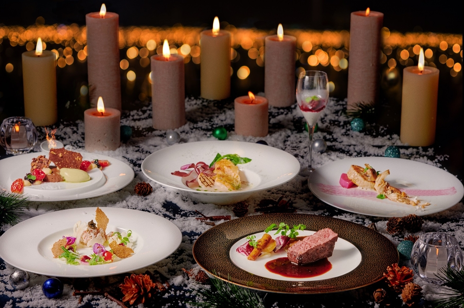 まるでアートのような料理の数々が煌めくキャンドルとともにロマンティックな聖夜を彩ります。