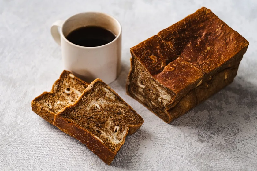 人気NO.1の看板商品3日間かけて育てる「天然酵母おいしい食パン」からコーヒー風味の生地とホワイトチョコレートを練り込んだミルク風味の生地を作り2つの生地を重ね合わせてマーブル状に焼きあげました。コーヒーの香ばしさ、苦みに牛乳のコク、旨みが口の中で合わさってまるでカフェオレのような味わい、風香味の食パンに仕上がりました。トーストするとコーヒーの香りが引き立ち外はサックリ、中はモッチリの食感がお楽しみいただけます。