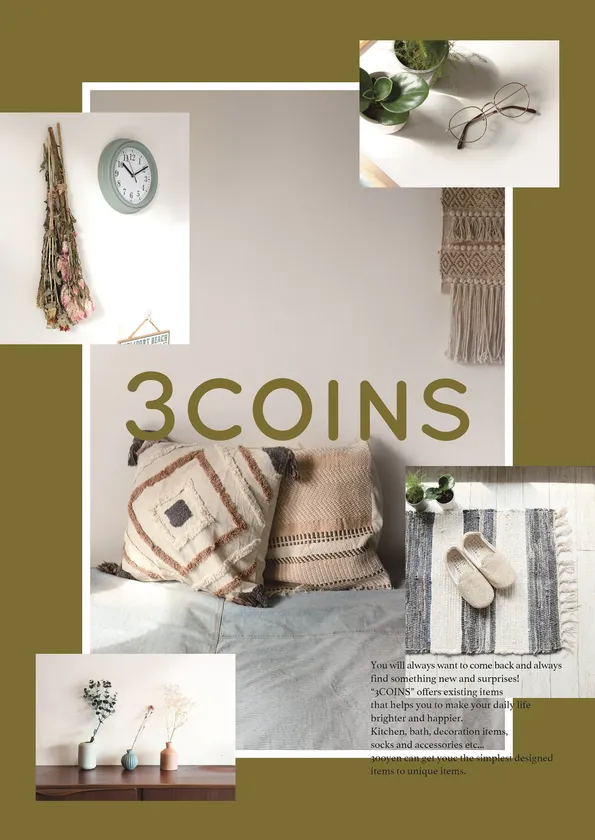 いつ行っても新しい発見がある「3COINS」は、あなたの“ちょっと幸せ”をお手伝いする雑貨店です。