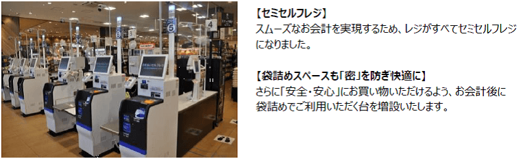 今回の改装では、水産・惣菜売り場に対面調理場を設置し、お買い物がさらに楽しくなる売り場に生まれ変わります。また、ファミリー向けの商品を充実させるほか、レジや袋詰めスペースもリニューアルし、「安全・安心」でスムーズなお会計を実現いたします。