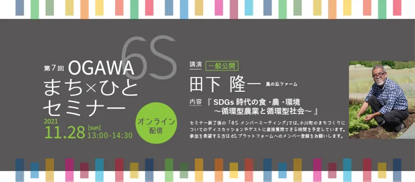 小川町SDGsまち×ひとプロジェクト主催 【第7回OGAWA 6S まち×ひとセミナー】 11月28日(日)13:00より開催 ※参加無料
