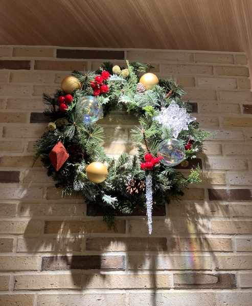 2024年は自然のなかでの「森の冬」をイメージした、ナチュラルで透明感あふれるクリスマスツリーやリース、ガーランドを館内の様々な場所に設置。空気が澄んだ森の中、ツリーやモミのガーランドが自然に絡んでいる様子を表現しました。透明感あふれる雪の結晶をイメージしたクリスタルオーナメント、つららのようなクリアカラーのオーナメントやボール、白枝などを使用して「神秘的な森の朝」を表現しました。