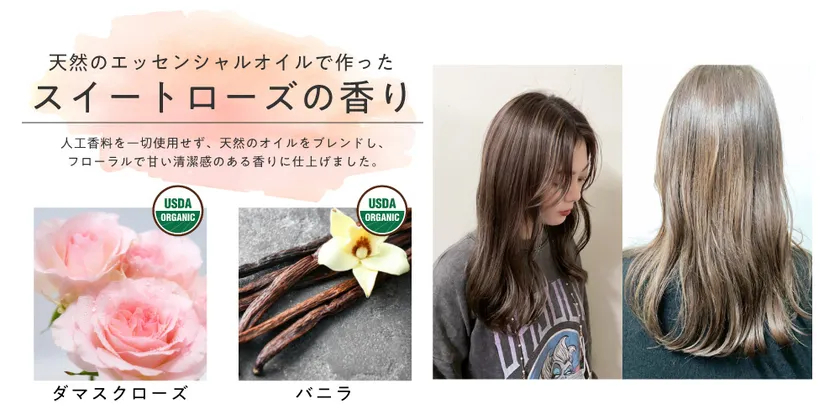 スィートローズの香りで濡れ髪スタイリング用ヘアバター