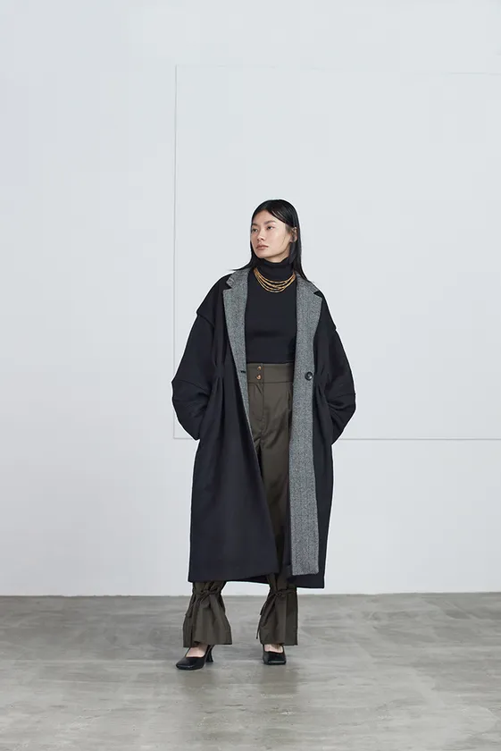 しっかりと丈の長さを出し保温性も抜群で、飽きることなく長く愛用できる、大人のモードスタイルに仕立てました。