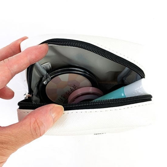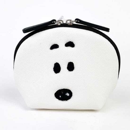 フェイスアップのスヌーピーが刺繍されたスクエアポーチです。マチもたっぷりで四角い形がキュートなポーチです。