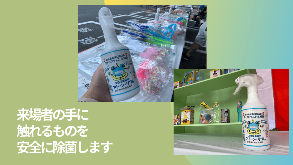以前から弊社では、車両利用による排気ガスなどでご迷惑をおかけしている分、地域貢献活動として、東小金井南口商店会に対して、夏祭り当日の人員派遣やゴミ拾い活動を行っています。毎年恒例だった夏祭りが今年も中止になり、代わりにスピンオフ企画として8月にちょこっと縁日を行うこと受け、このような状況下だからこそ、地域の皆さんの安全のために、クリーン・リフレが感染対策のお役に立つのではないかと考えたためです。