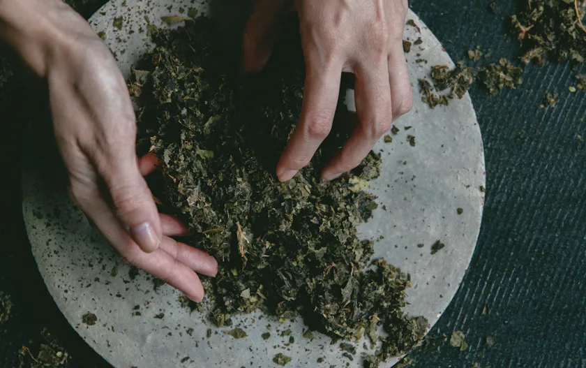 「持続可能な暮らしや地域づくり」に取り組む「余市エコビレッジ(NPO法人北海道エコビレッジ推進プロジェクト)」さんにご協力いただき、有機的な農法で作られた葉を収穫。検査機関に依頼し、農薬検査や菌数検査を行うことで安全性を確認できました。