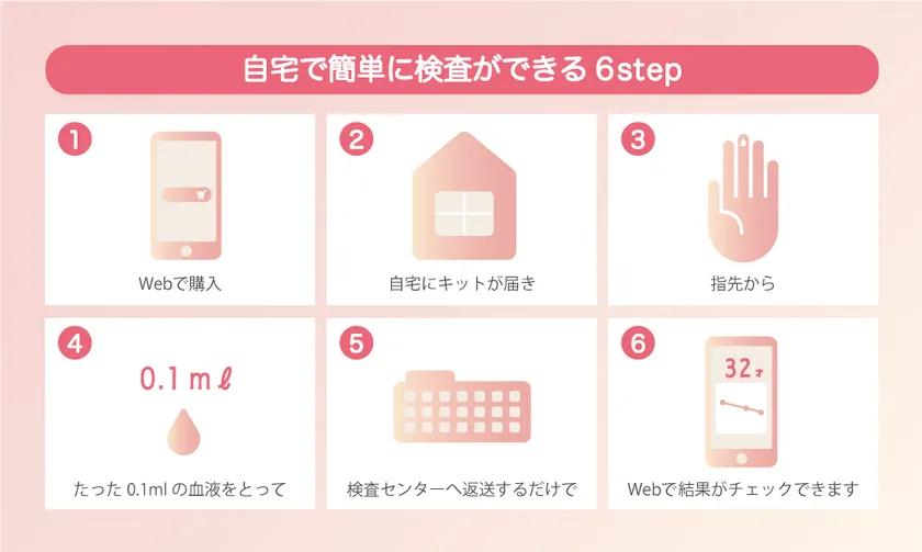 忙しくて病院へ足を運ぶことが難しい方でも、自宅にいながら通院の時間を確保することなく、卵巣年齢を知ることができます。